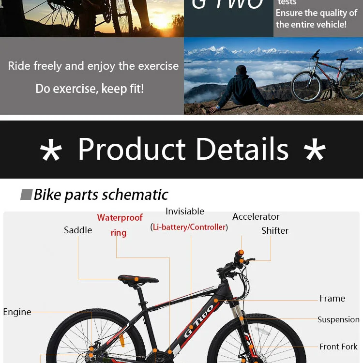 26'' 21Speed Electric Bicycle Mountain Bike, 48V 9Ah Built-in Lithium Battery, 350W Brushless Motor, Aluminium Alloy Frame